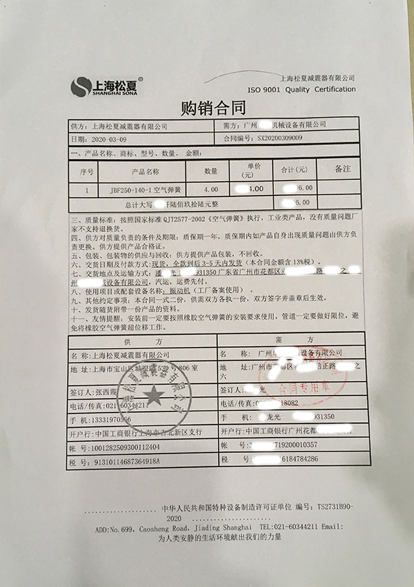 氣動(dòng)直線振動(dòng)器用橡膠空氣彈簧減震器合同案例
